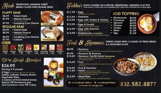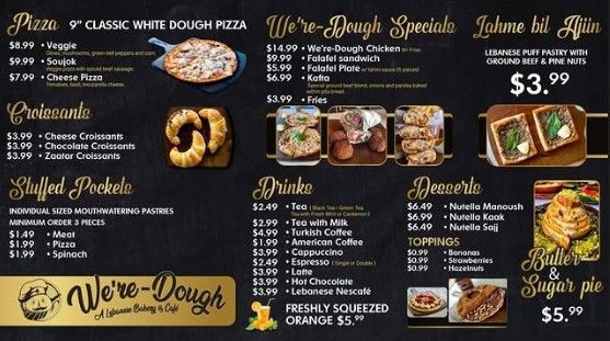 Enjoy our diverse selection of savory delights, carefully crafted with passion. We're-Dough Bakery offers a range of authentic dishes, from manoush and kaak to delicious pizzas and sajj. Enjoy our hearty breakfasts or tasty savory pastries any time of day. Browse our menu to find your perfect meal.